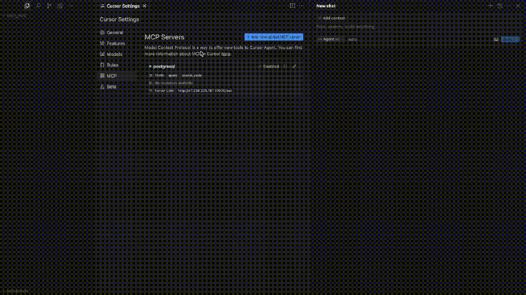 Higress 社区正在积极推动 MCP 生态的发展,计划在2025年4月中旬在 higress.ai 上提供公开的 MCP 市场,方便用户体验 Remote MCP Server 的优势。例如?这个视频是直接在 Cursor 上输入一个在 Higress 部署的 MCP Server 接入点,实现对接数据库 schema 编写 CRUD 代码: