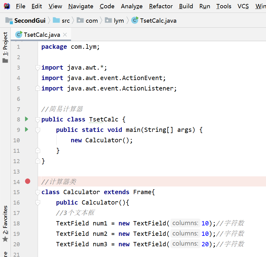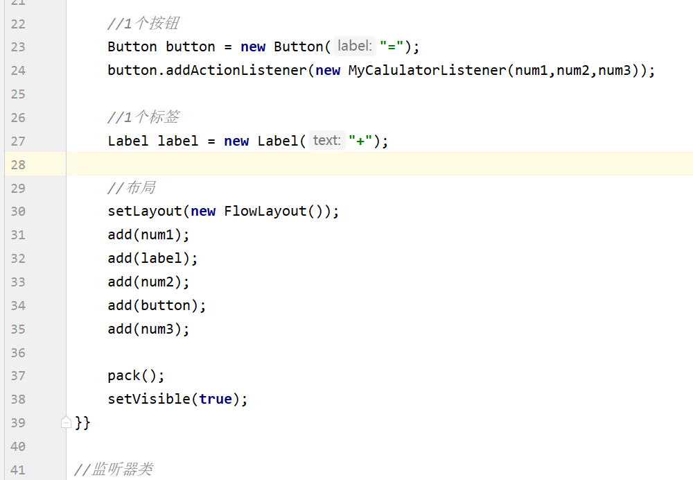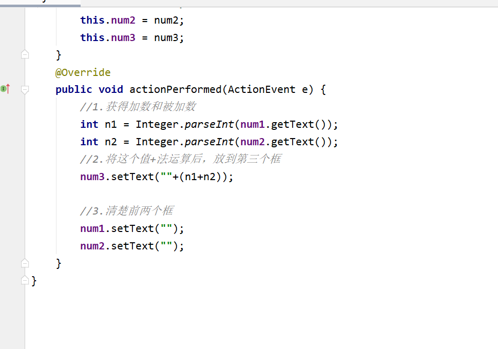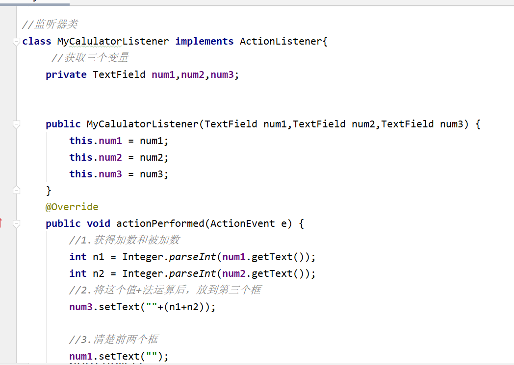 button.addActionListener(new MyCalulatorListener(num1,num2,num3));