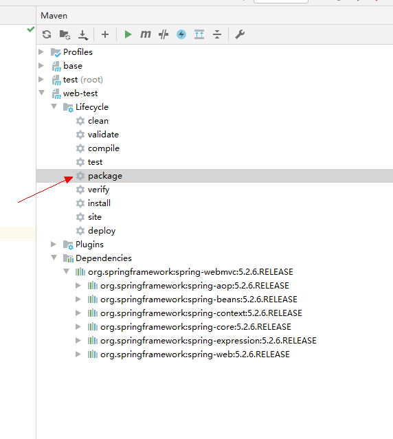 <?xml version="1.0" encoding="UTF-8"?> <project xmlns="http://maven.apache.org/POM/4.0.0" xmlns:xsi="http://www.w3.org/2001/XMLSchema-instance" xsi:schemaLocation="http://maven.apache.org/POM/4.0.0 http://maven.apache.org/xsd/maven-4.0.0.xsd"> <parent> <artifactId>test</artifactId> <groupId>org.example</groupId> <version>1.0-SNAPSHOT</version> </parent> <modelVersion>4.0.0</modelVersion> <!--指定打包类型,tomcat加载时使用--> <packaging>war</packaging> <artifactId>web-test</artifactId> <dependencies> <dependency> <groupId>org.springframework</groupId> <artifactId>spring-webmvc</artifactId> <version>5.2.6.RELEASE</version> </dependency> </dependencies> <properties> <file.encoding>UTF-8</file.encoding> </properties> </project>
