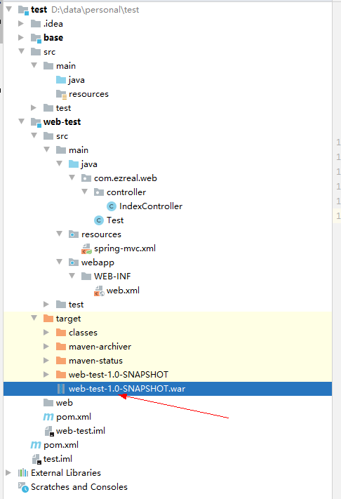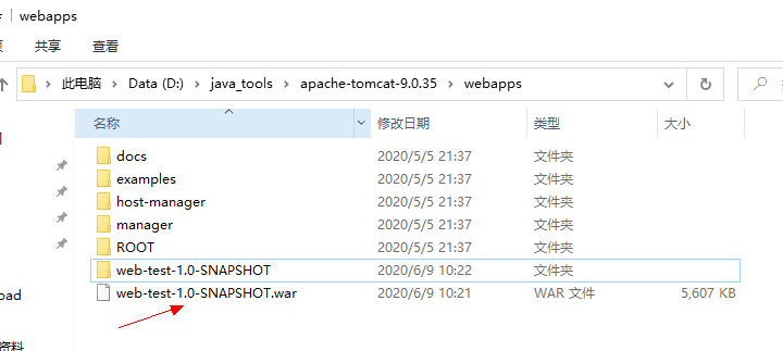 路径中的web-test-1.0-SNAPSHOT为项目名称,即war包解压后的文件夹名称。