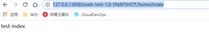 9. 页面访问http://127.0.0.1:8080/web-test-1.0-SNAPSHOT/home/index。