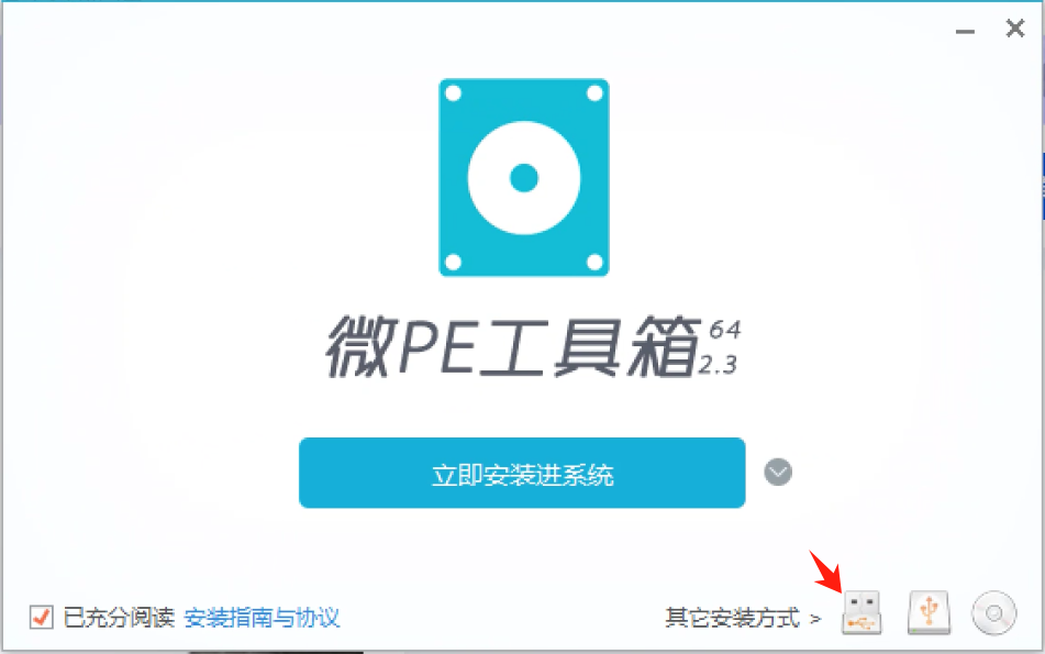 首先去下载微PE工具箱并打开安装包,点击其他安装方式中的安装到 U 盘: