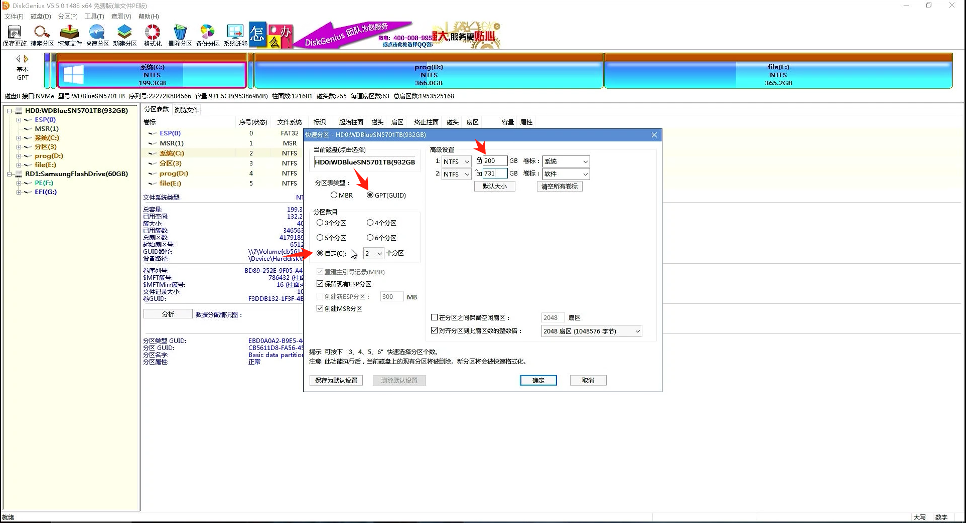 进入 PE 系统后,打开分区工具,先进行分区(可选):