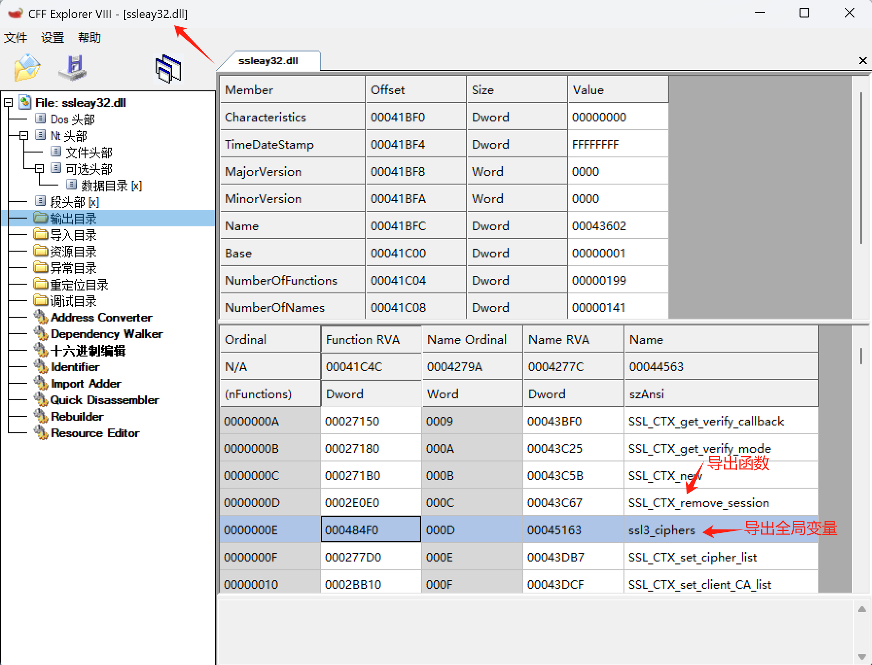 # 导出全局变量 ssl3_ciphers 无需跳转