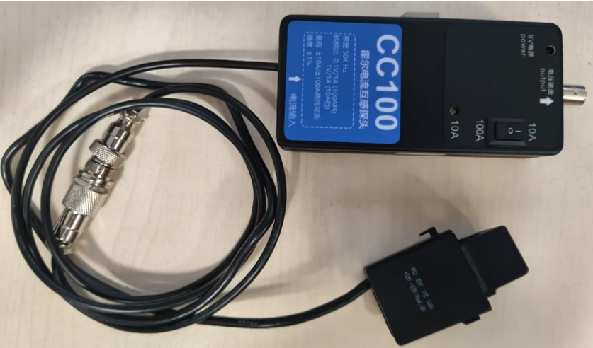 本次实验依据LOTO虚拟示波器使用说明书 8.2.32 章节中 "手动单次采集数据点拟合曲线功能" 的操作,对LOTO 100A 的电流探头(如下图所示)的线性度展开定量分析。该电流探头的原理在于将-100A到+100A的电流转换成-10V到+10V的电压值,以便进行分析和测量,其线性度反映了电流转换电压的精准度,线性度越低,准确度越高。电流探头在使用时无需断开电路或串联电流表,只需将探头扣在导线外部,通过电磁感应或霍尔效应原理感应电流产生的磁场,可避免对原有电路造成干扰或破坏,同时提升了测量大电流时的安全性。
