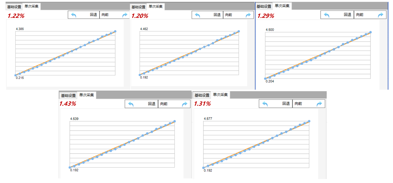 我们通过多次测量取平均值的方式对LOTO 电流探头模块进行更准确的线性度评估,步进间隔依旧选用0.5V。