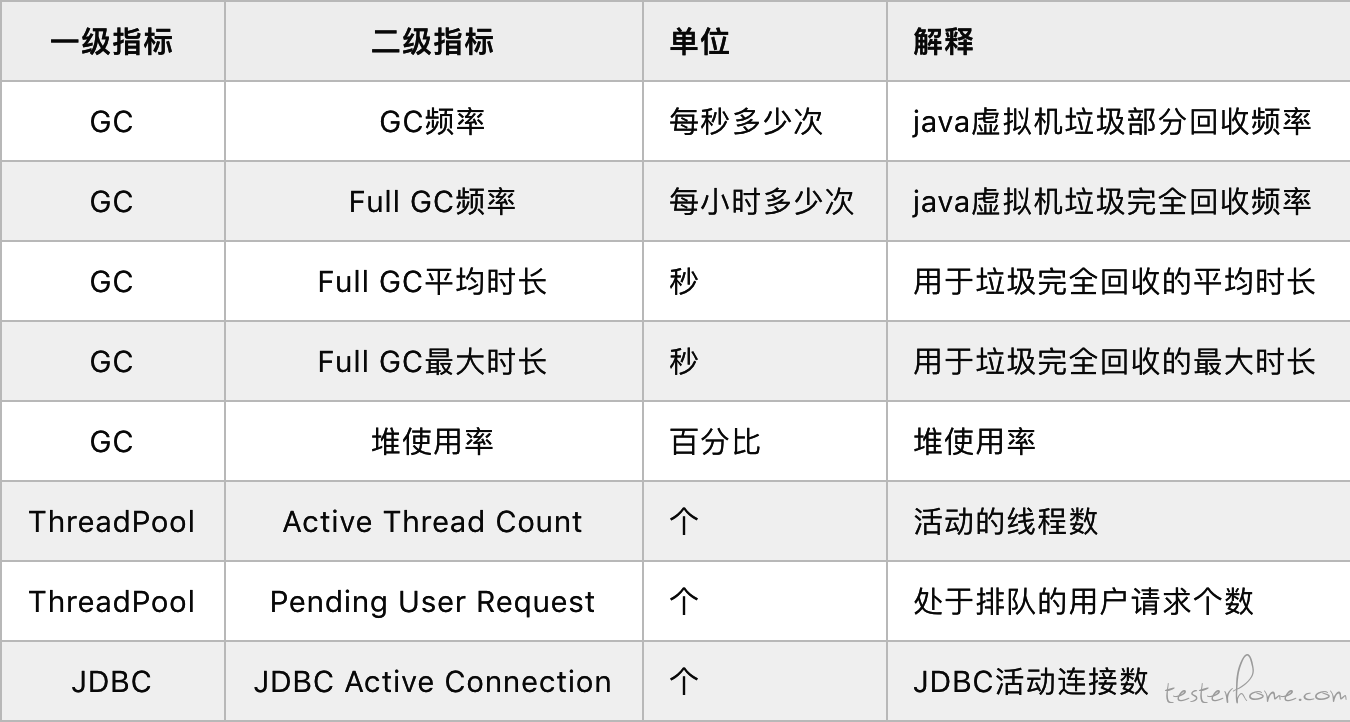 - 测试指标获取后,需说明相关的前提条件(如在多少的业务量、系统资源情况等)。