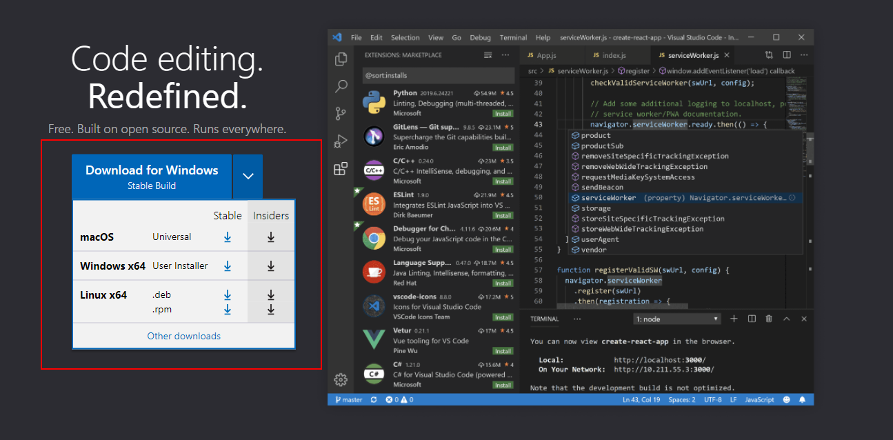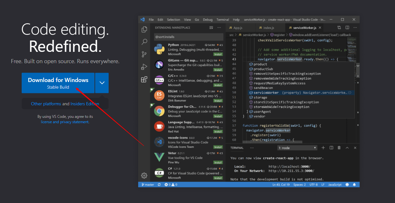 在浏览器中搜索VSCode,一般前面的可能是广告,一定要找到官网的地址,如下图所示:
