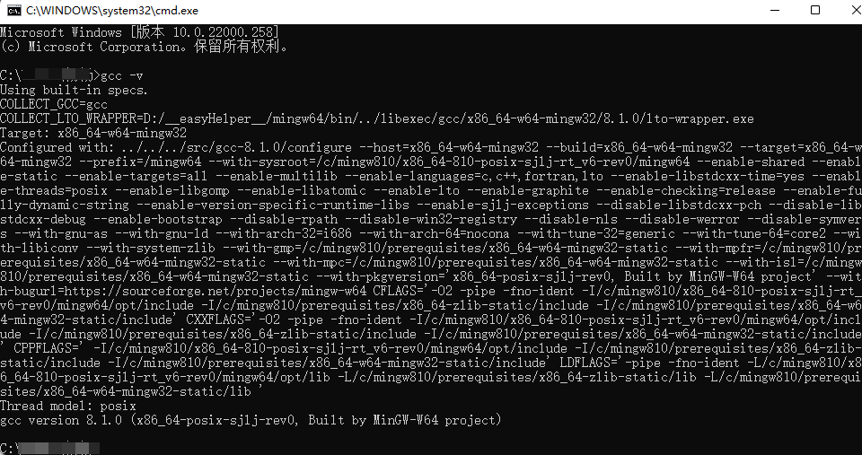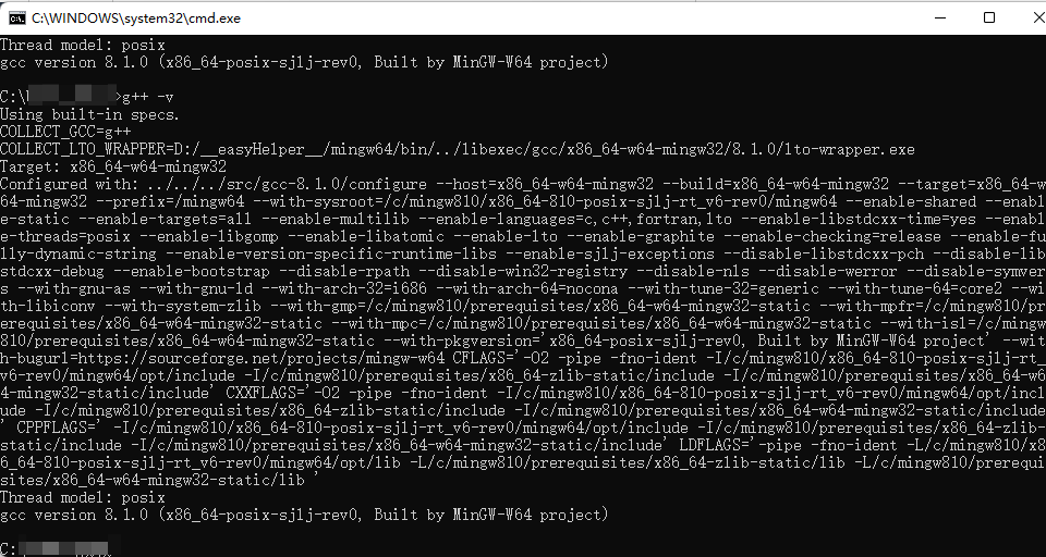 在命令行中输入gcc -v 或 g++ -v,会出现以下内容: