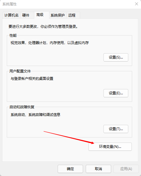 依次打开计算机设置->系统->关于->高级系统设置,按如图所示打开系统环境变量: