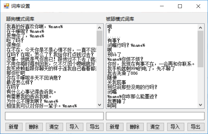 安装号软件点击运行,仍要运行,打开之后可以看到三个模式 舔狗模式 被舔模式 也可以自定义词库。