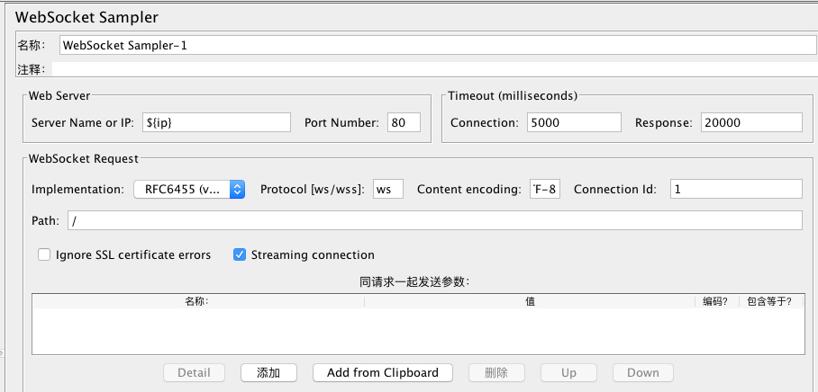Server Name or IP: web socket发送的目标服务器地址或IP