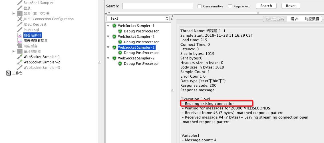 Response Pattern 如果取样器等待含有标识的消息继续通讯, 直到timeout, 连接关闭