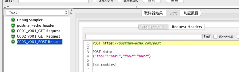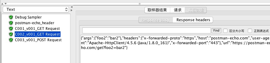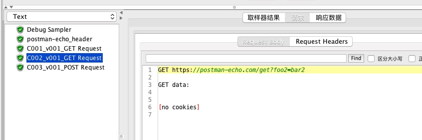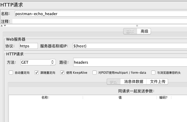 在该线程组下创建一个普通http请求, 命名为postman-echo_header, 用于和数据驱动比较