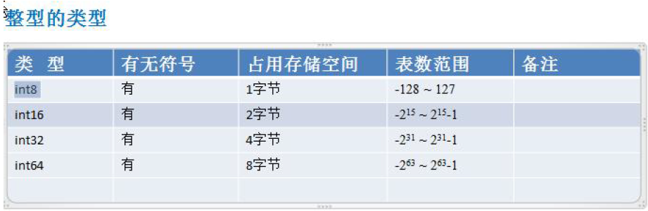 ②:无符整型(非负数整型),在①列表前加u即可,表数范围将从0开始。