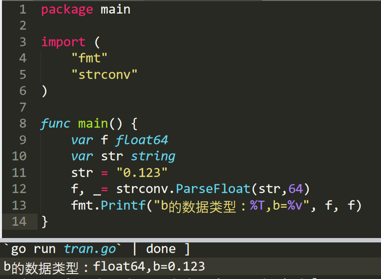 ②:strconv.ParseFloat(str,bitsize),注意该函数返回64位的浮点数,bitsize表示该函数表示str为多少位的浮点数