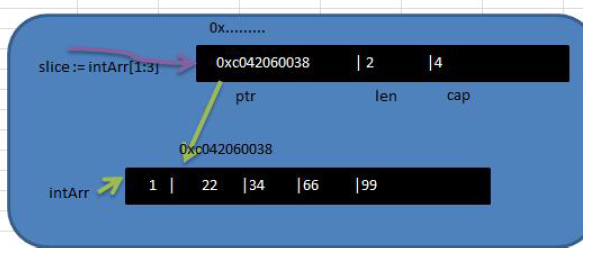 ①:切片赋值范围注意点 var slice = arr[0:arr[end]],将不会包含arr数组的最后一个元素,需要 arr[0:len(arr)]才能完全赋值给slice;