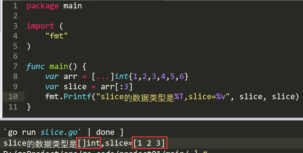 ⑦:字符串亦可以赋值给切片,过程与数组一致,举例略。