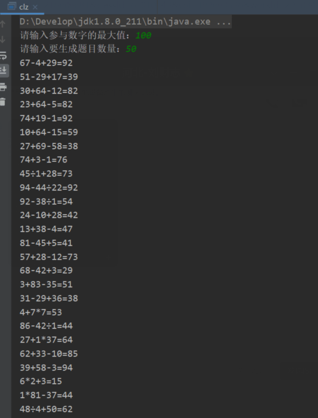 完善课上的口算题卡代码,实现重复题目的检测、题目数字范围、加减乘除算式的参数化等扩展功能,提交代码和运行截图。