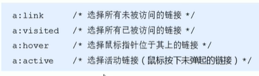 - 链接伪类选择器: