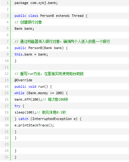 程序分析:钱的数量要设置成一个静态的变量。两个人要取的同一个对象值