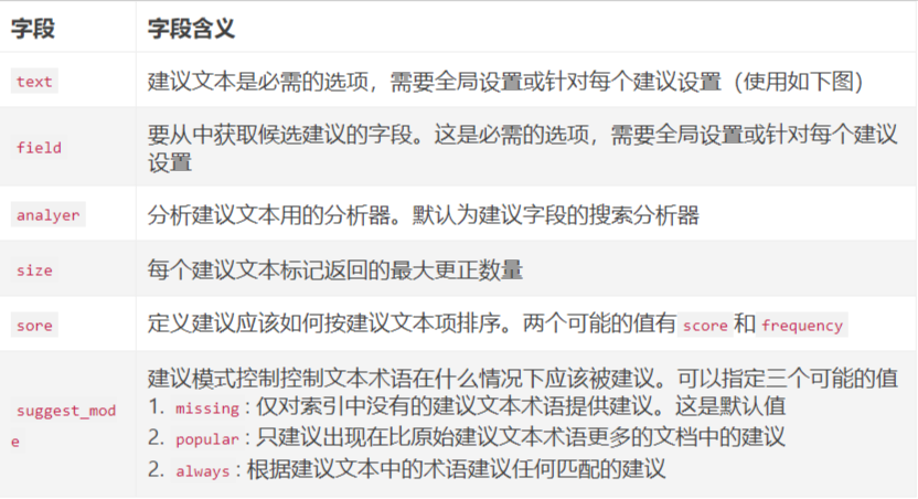 completion suggester(完成补全单词,输出如前半部分,补全整个单词)