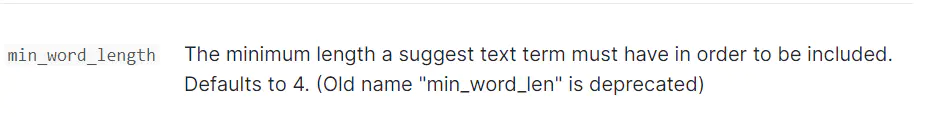POST /book/_search { "suggest": { "term-suggestion": { "text": "lucen rock", "term": { "suggest_mode": "always", "field": "passage", "prefix_length":0, "sort":"frequency" } } } } POST /book/_search { "suggest": { "YOUR_SUGGESTION": { "text": "lucne and elasticsear rock hello world ", "phrase": { "field": "passage", "max_errors":2, "confidence":0, "direct_generator":[ { "field": "passage", "suggest_mode": "always" } ], "highlight": { "pre_tag": "<em>", "post_tag": "</em>" } } } } }