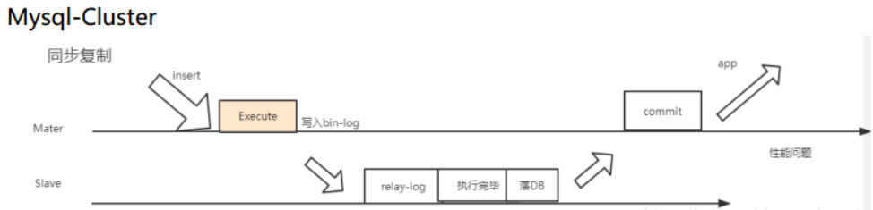 主节点不会主动push bin log到从节点,这样有可能导致failover的情况下,也许从节点没有即时地将最新的bin log同步到本地,但效率高