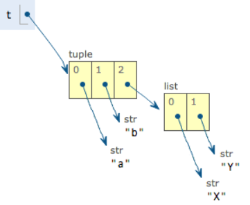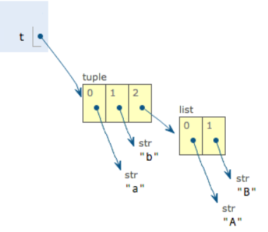 >>> t=('a','b',['A','B']) >>> t[2][0]='X' >>> t[2][1]='Y' >>> t ('a', 'b', ['X', 'Y'])