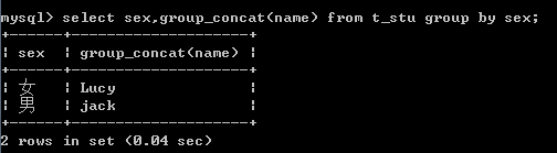 这里先使用GROUP BY字段先进行分组查询,然后再使用GROUP_CONCAT()函数将每个分组的name字段的值显示