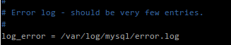 log_error参数表示日志文件的位置,该位置默认情况下是不允许普通用户访问的,只能使用su用户访问,一般来说在该错误日志的名称默认情况下是主机名.err,但是如果在配置文件中指定了名称则会使用用户定义的,如下已经在配置文件中定义了: