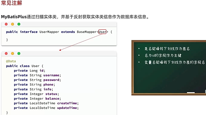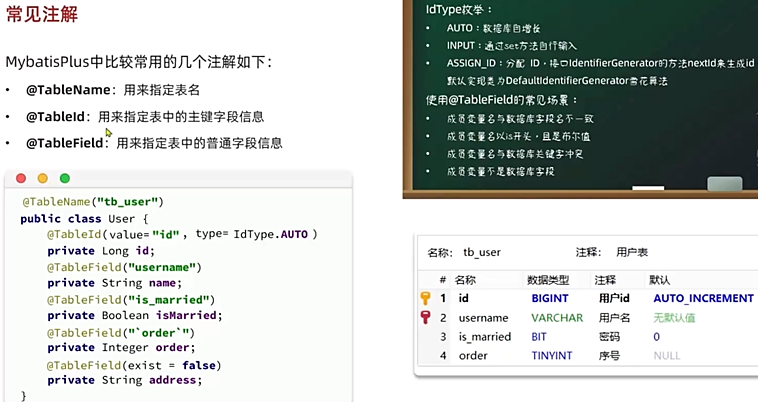 常用注解中@TableId注释需要特别注意,不仅要写明值value与表内的属性对应,还要写明是否自增等类型