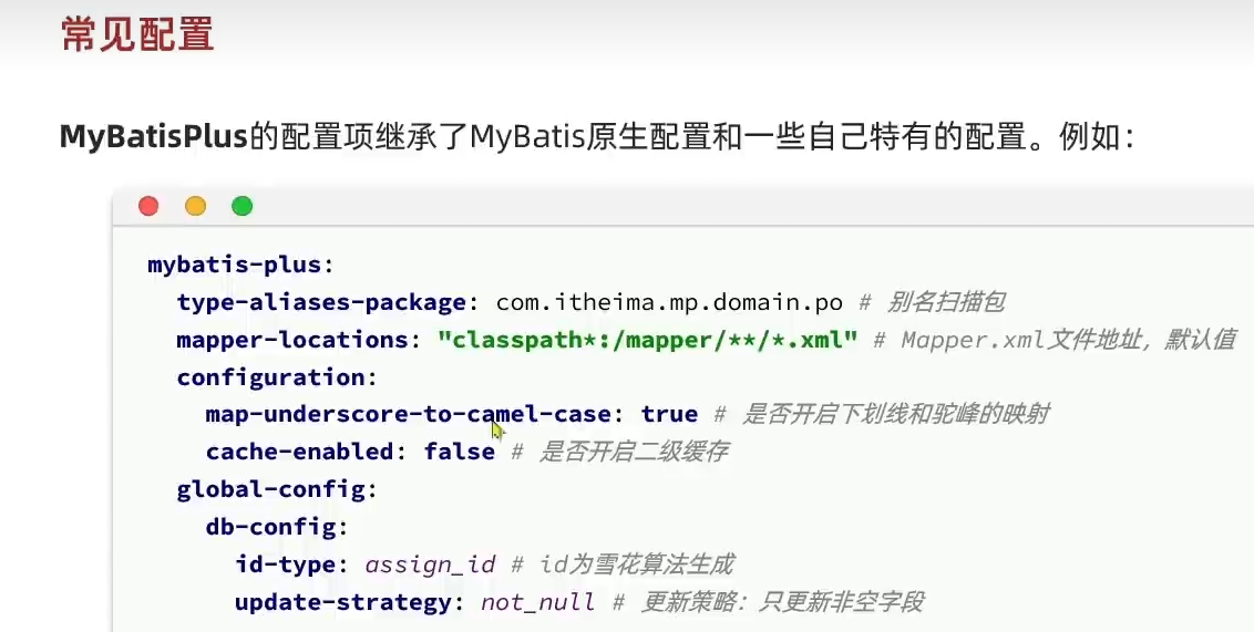 mp中大部分的配置都是继承的mybatis,所以很类似