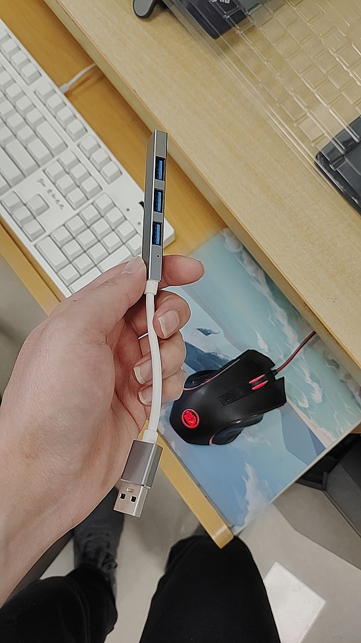 最后客服给我的唯一解决方案就是,买一个带按钮的分线器,代替插拔。但是,每次不是还要摁一下开关?那也挺脑瘫的,毕竟我想把键盘接到主机后面,摁开关和拔插一样不方便。因此,我吐了啊。