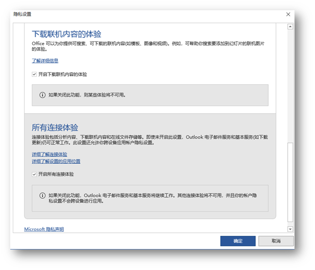 你的组织员管理隐私设置,并且已关闭可选的连接体验。