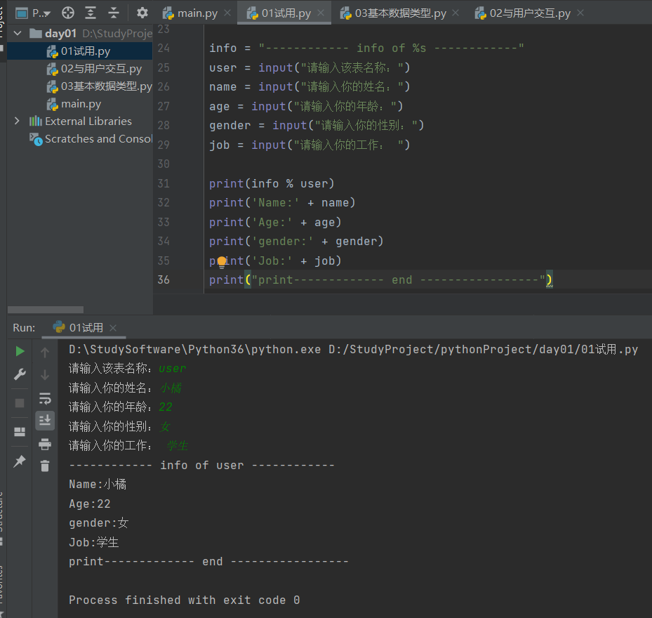 基本数据类型、用户交互、格式化输出、基本运算符、多种赋值符号