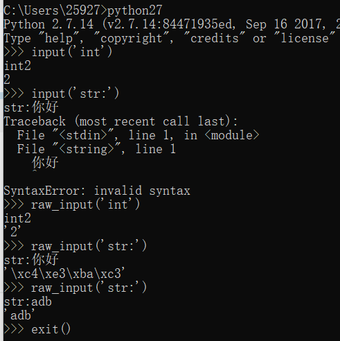 raw_input():可接受数值和字符串,输出的类型均为字符型