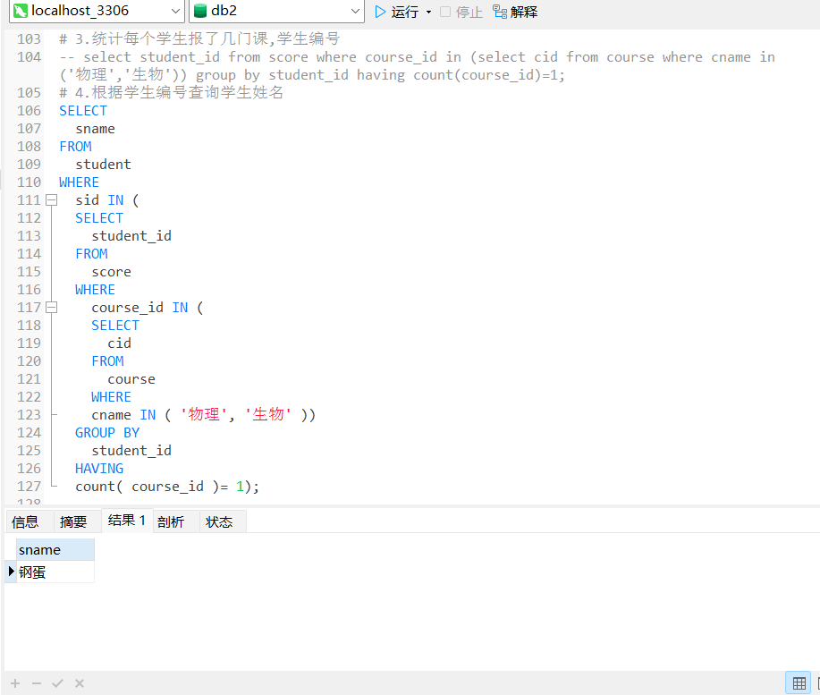 选中要运行的语句点击运行按钮可查询单条的SQL语句