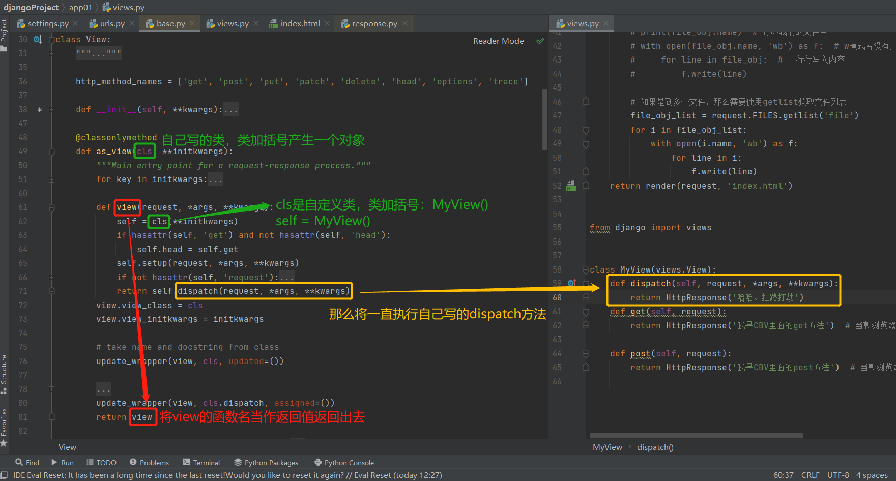 # CBV路由匹配 类名点方法名(类点名字加括号可以看成对象点名字加括号,那么对象后面点的是方法)