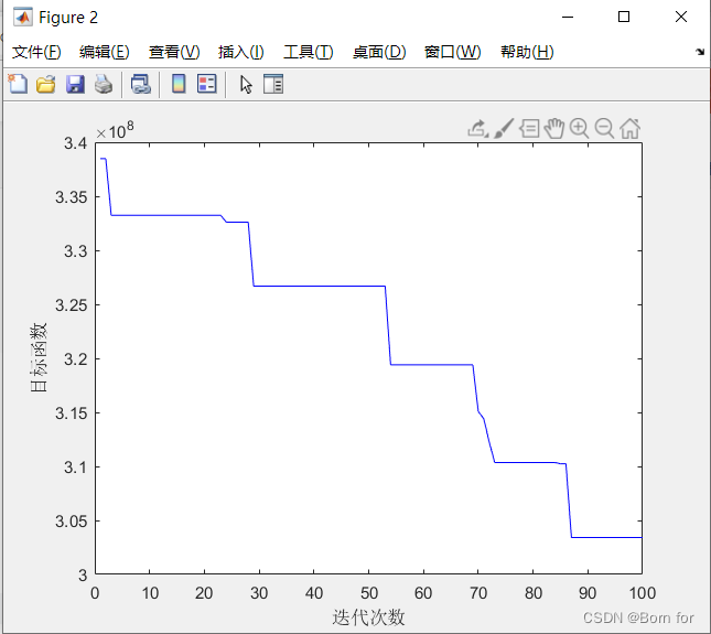 xlabel('迭代次数');ylabel('目标函数');