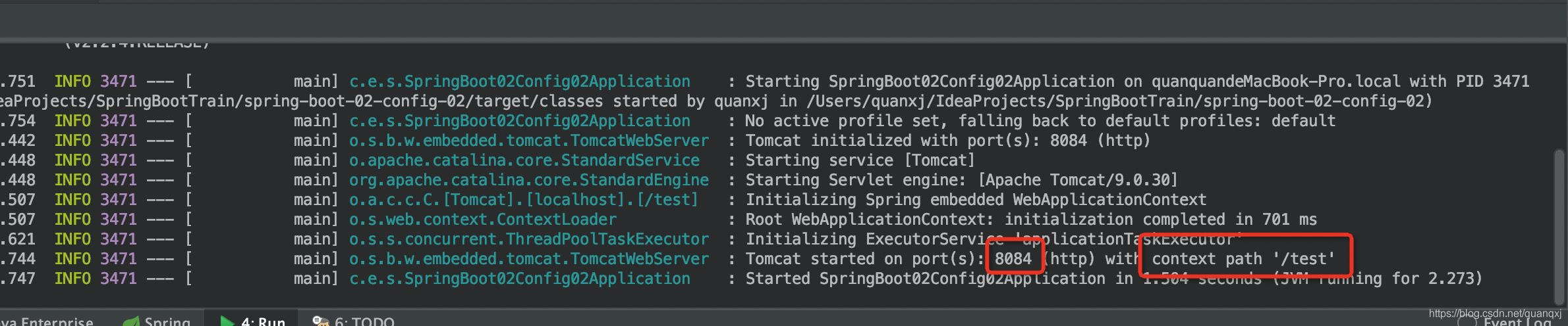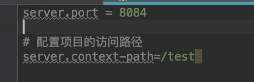 在使用springboot时,在application.properties中配置了server.context-path=/test,如图: