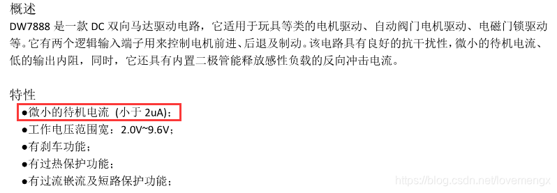 电机驱动IC型号是 DW7888,我们查到规格书,待机电流 <2uA,因此即使电源未关断,在待机模式下,漏电流也不至于那么大才对。