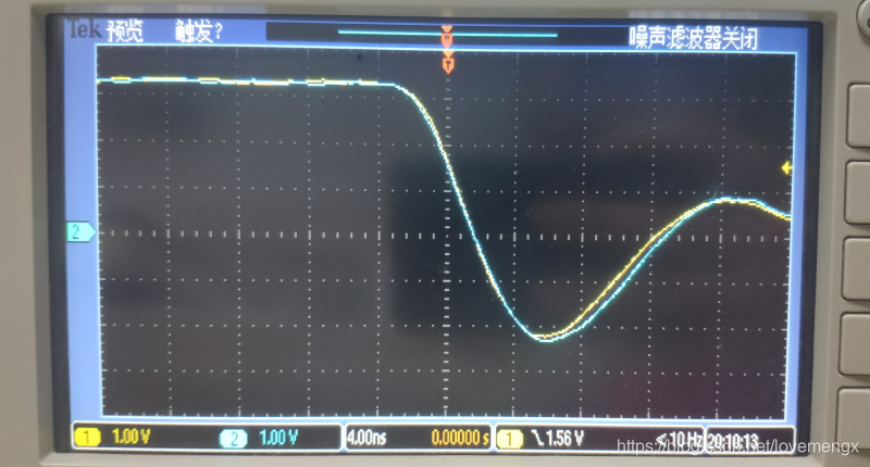 测的波形如下,同组的 GPIO 几乎是同时拉低(示波器精度有限):