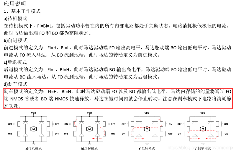 +// 2.有效修复方法是先进入刹车模式, 再进入待机模式, 两个输入信号同时拉低的时间一定要小于 500ns