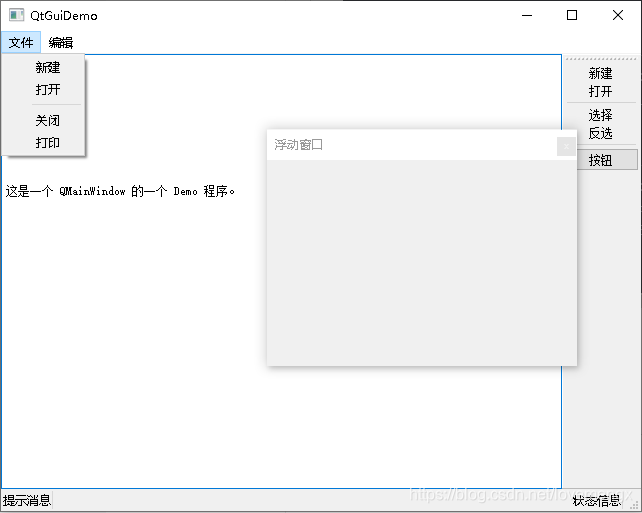 QDockWidget *dockWidget = new QDockWidget("浮动窗口", this);