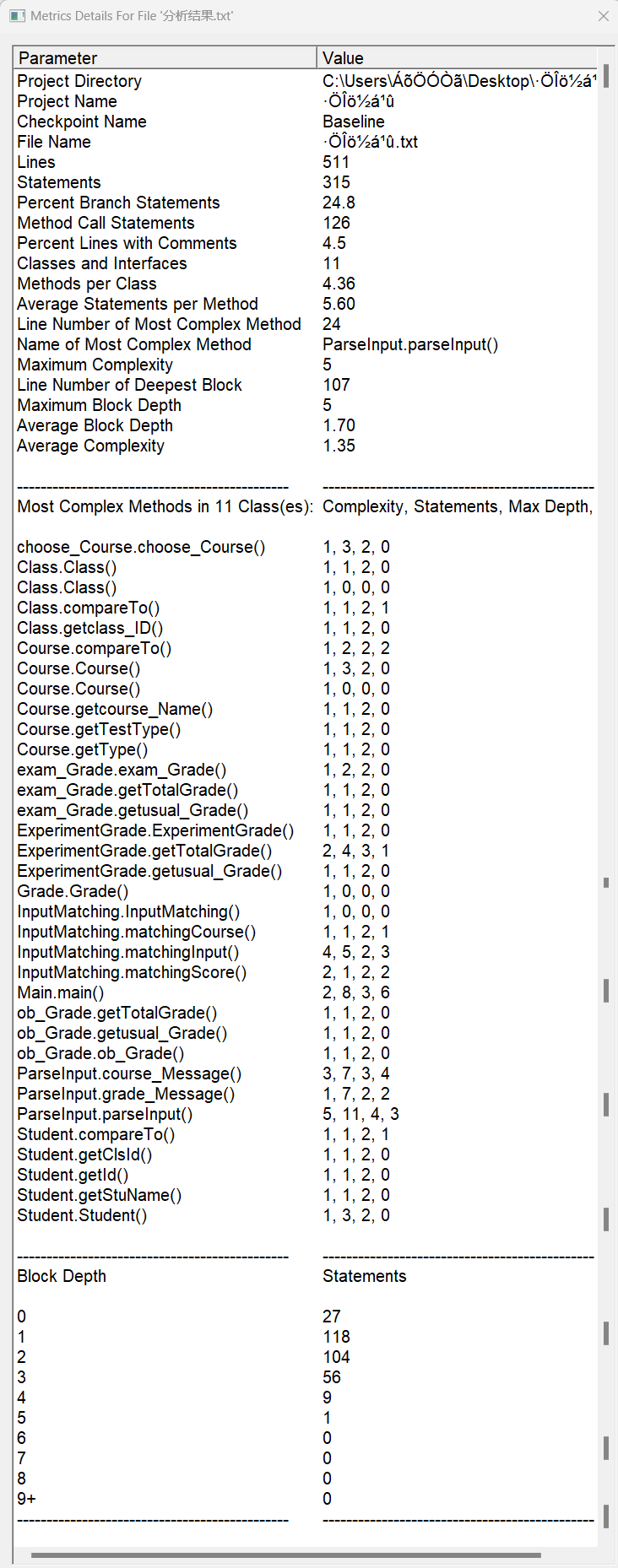 输出包含三个部分,包括学生所有课程总成绩的平均分、单门课程成绩平均分、单门课程总成绩平均分、班级所有课程总成绩平均分。