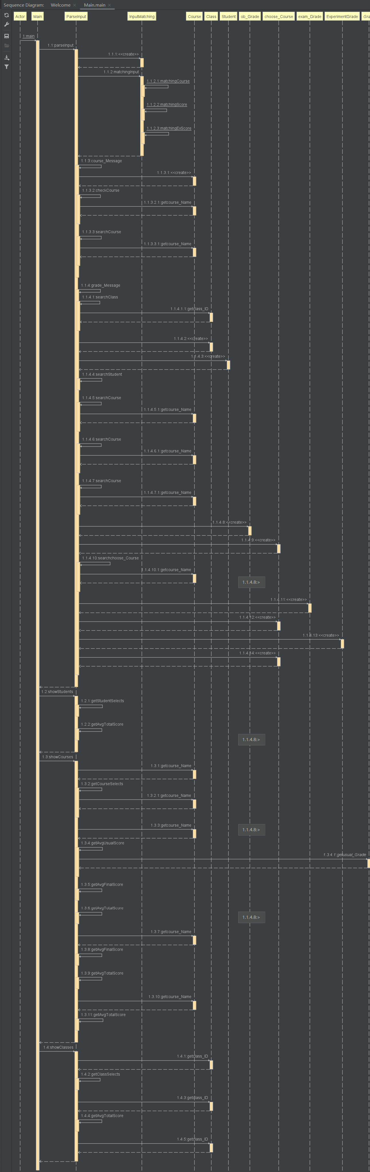 import java.text.Collator; import java.util.*; import java.lang.reflect.Array; import java.util.ArrayList; import java.util.Collections; public class Main { public static void main(String[] args) { Scanner in = new Scanner(System.in); ArrayList<Course> Courses = new ArrayList<>(); ArrayList<Classroom> Classrooms = new ArrayList<>(); String Label = in.nextLine(); while (!Label.equals("end")) { String Line[] = Label.split(" "); if (Line.length == 3 ) { Course course; if(Line.length == 3) course = new Course(Line[0],Line[1],Line[2]); else course = new Course(Line[0],Line[1],"考试"); if (course.Error) { course = null; } else { boolean search = false; for (Course course1 : Courses) { if (course1.getCourse_Name().equals(course.getCourse_Name())) { search = true; break; } } if (!search) Courses.add(course); } } else if(Line.length == 4 || Line.length == 5) { //读入学生的成绩,不包括平时分 Student student; if (Line.length == 4) student = new Student(Line[0],Line[1],Line[2],"0",Line[3],Courses,Classrooms); else student = new Student(Line[0],Line[1],Line[2],Line[3],Line[4],Courses,Classrooms); if (!student.course_exist){ System.out.println(Line[2] +" does not exist"); } //这里的error是用来判读这个课程是不是有问题,有问题的话,课程加不进去 boolean error = false; int number = 1; if (Line.length == 5) number = 2; /*注意这里的判断方法,在error1和error2都存在的情况下,会报错*/ if (student.courses.size()==0) { //没有找到该课程和格式错误 error = true; } else if ((student.courses.get(student.courses.size()-1)).getExam_Way()==number){ //输入数据 student.courses.removeAll(student.courses); error = true; System.out.println(student.getNum() +" "+ student.getName() + " : access mode mismatch"); } boolean same =false; if (!student.wrong) { int Class_number = Integer.parseInt(Line[0])/100; //获得学生的班级号 Classroom classroom = new Classroom(Class_number); //初始化一个班级 if (Classrooms.size()==0) { //学生信息没有错,在没有一个班级的情况下新建添加学生 Student student_ppp; if (Line.length == 4) student_ppp = new Student(Line[0],Line[1],Line[2],"0",Line[3],Courses,Classrooms); else student_ppp = new Student(Line[0],Line[1],Line[2],Line[3],Line[4],Courses,Classrooms); if (student.courses.size()==0){ student_ppp.courses.removeAll(student_ppp.courses); } classroom.students.add(student_ppp); Classrooms.add(classroom); } else{ //学生信息没有错,在查找不到和查找得到的情况下添加学生 for (int i = 0 ; i < Classrooms.size() ; i++){ //遍历查找班级是否存在 if (Classrooms.get(i).getClass_Number() == Class_number){ //如果存在,判断该学生是否存在 Student pp = Classrooms.get(i).search_class(student.getName()); //返回班级里查找的学生 /*如果不存在就加进去*/ if(pp==null) { Classrooms.get(i).students.add(student); } /*如果存在,那就不加进去*/ else { /*要把重复的成绩信息,忽略掉*/ same = pp.Same_Student(student); if (!same) { pp.courses.add(student.courses.get((student.courses.size() - 1))); } } break; } else if (i==Classrooms.size()-1){ //不存在就在班级表上添加该班级 classroom.students.add(student); Classrooms.add(classroom); break; } } } } /*以下为添加Courses的student*/ if (!error && !same) { for (Course course : Courses) { String name = student.courses.get(student.courses.size()-1).getCourse_Name(); String name1 = course.getCourse_Name(); if (name.equals(name1)) { course.students.add(student); break; } } } } Label = in.nextLine(); } Collections.sort(Classrooms); for (Classroom classroom : Classrooms) { classroom.Show_Students(); } Comparator<Object> com = Collator.getInstance(java.util.Locale.CHINA); String[] newArray = new String[Courses.size()]; for (int i = 0 ; i < Courses.size() ; i++) { newArray[i] = Courses.get(i).getCourse_Name(); } List<String> list = Arrays.asList(newArray); Collections.sort(list,com); for (String i : list) { for (Course course : Courses) { if (course.students.size()==0) { System.out.println(i + " " + "has no grades yet"); break; } else if (course.getCourse_Name().equals(i)){ course.show_Grade(); break; } } } for (Classroom classroom : Classrooms) { classroom.show_Classroom(); } } public boolean search_Name_Course (String name, ArrayList<Course> Courses) { for (Course course : Courses) { if (course.getCourse_Name().equals(name)) { return true; } } return false; } } class Student implements Comparable<Student>{ private int Class_number; private String name; private int grade_Daily; private int grade_Exam; private int num; boolean course_exist = true; boolean wrong = false; ArrayList<Course> courses = new ArrayList<>(); Student( String num, String name, String course_name ,String grade_Daily,String grade_Exam, ArrayList<Course> courses, ArrayList<Classroom> classrooms){ Course pp = new Course(); Course pp_0 = null; try { this.num = Integer.parseInt(num); this.name = name; for (Course course : courses) { if (course.getCourse_Name().equals(course_name)){ pp_0 = course; pp = course.Clone(); this.grade_Daily = Integer.parseInt(grade_Daily); this.grade_Exam = Integer.parseInt(grade_Exam); pp.setScour_Exam(Integer.parseInt(grade_Exam)); pp.setScour_Daily(Integer.parseInt(grade_Daily)); break; } } } catch (Exception e) { System.out.println("wrong format"); wrong = true; } if (pp_0!=null) { if (this.grade_Exam<0 || this.grade_Exam>100 || this.grade_Daily<0 || this.grade_Daily>100) { System.out.println("wrong format"); wrong = true; } else if (num.length()!=8 || name.length()>10 || course_name.length()>10) { System.out.println("wrong format"); wrong = true; } else{ this.courses.add(pp); } } else { course_exist = false; } } public int getClass_number() { return Class_number; } public int totalGrade() { double total = 0; for (Course course : courses) { if (course.getExam_Way() == 2) { total += course.getScour_Exam(); } else { total += course.getScour_Daily() * 0.3 + course.getScour_Exam() * 0.7; } } r