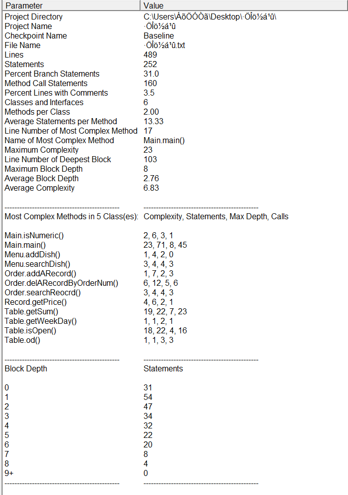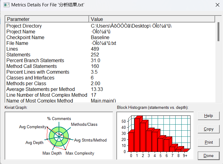 SourceMonitor的生成报表内容: