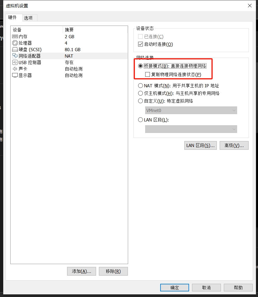 将kali网络模式改为桥接,以链接外部网络: