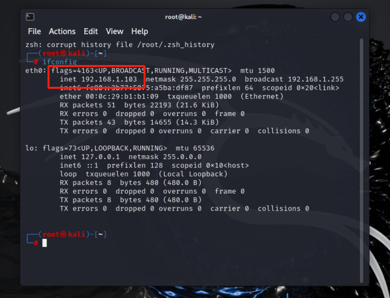 使用ifconfig命令获取ip: